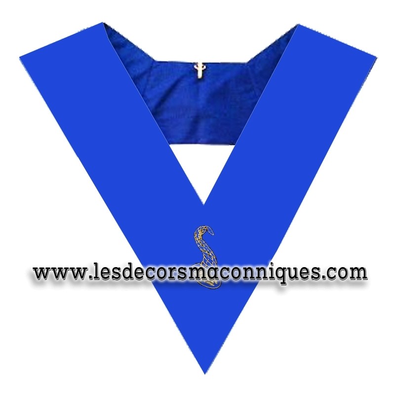 - Sautoir 1° Intendant, luxueuse soie bleu foncé, décoration par broderie office, dos noir