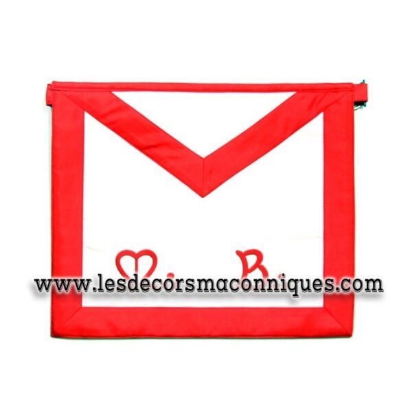 Tablier de Maître, lettre MB, ceinture rouge, fermeture émerillon en bronze